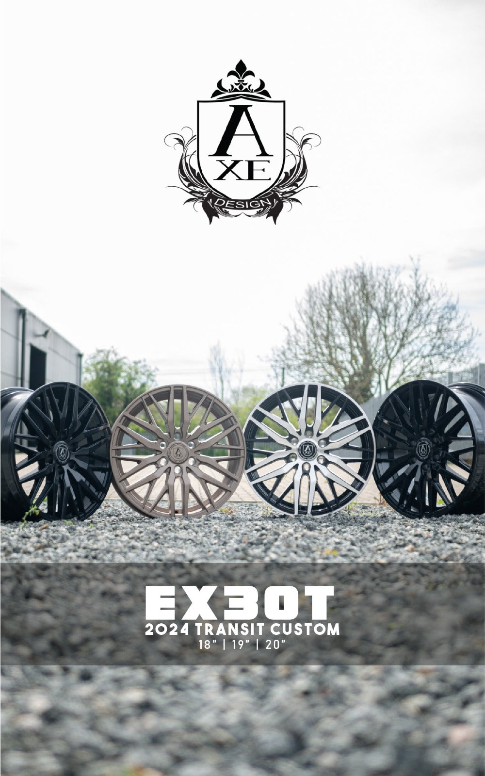 AXE EX30T Gloss Black diamond cut. New Ford Transit Custom 6x120 in 19”. Heavy load commercial.