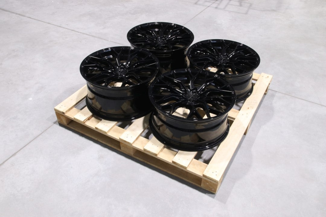 Set contains 2x CVR1 19x8,5 ET43 + 2x 19x9,5 ET35 5x112 Gloss Black