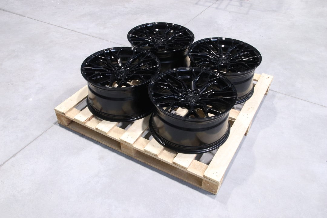 These wheels are custom painted to Gloss Black which can be seen at www.concaverwheels.com/finishing