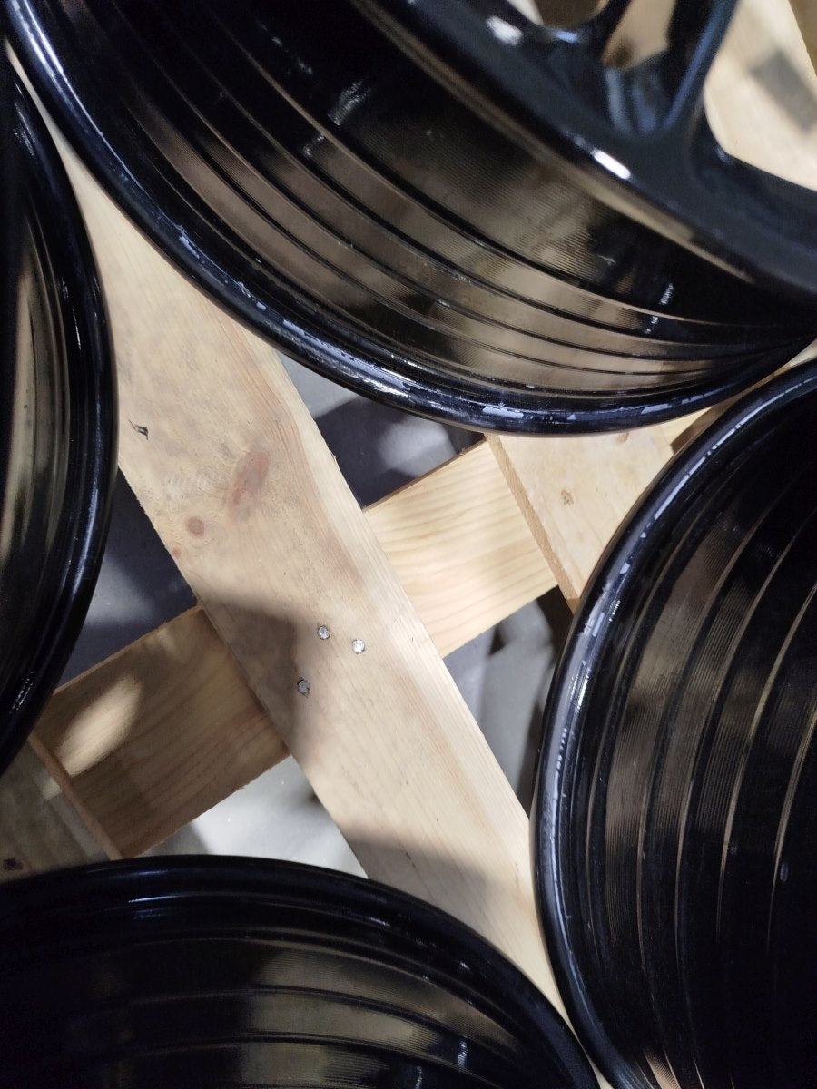 Wheels had tyres fitted and have marking on the barrel, but haven't been used on a car because of brake clearance problem.